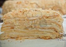 Die Äpfel werden in eine Lage Saure Sahne mit Zitronensaft gelegt, das gibt dem Apfelkuchen eine frische, leicht saure Note. Die Äpfel werden vor dem Backen des Apfelkuchens mit Aprikosenmarmelade bestrichen und mit gehackten Mandeln bestreut. So sieht der Apfelkuchen sehr schön aus, und die gehackten Mandeln haften gut auf dem Apfelkuchen.