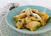 Die Eier trennen. Eigelb und Zucker mit dem Handrührgerät (Schneebesen) cremig schlagen. Die Mandeln, das Paniermehl und das Backpulver mischen und unter die Eigelbmasse rühren. Eiweiß steif schlagen und mit 50g Schokostreuseln unterheben.