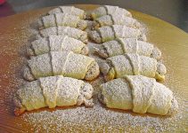 Vor dem Servieren das Gebäck mit Puderzucker bestäuben und in Schnitten teilen.