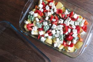 Zutaten : 600 g Kartoffel(n) 150 g Möhre(n) 2 m.-große Spitzpaprika, rote 1 Handvoll Erbsen, TK 200 g Feta-Käse 2 Stängel Rosmarin Olivenöl 1 Prise(n) Salz und Pfeffer Zutaten …