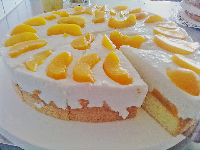 Pfirsiche in feine Scheiben schneiden (Hier können auch Pfirsiche aus der Dose verwendet werden).