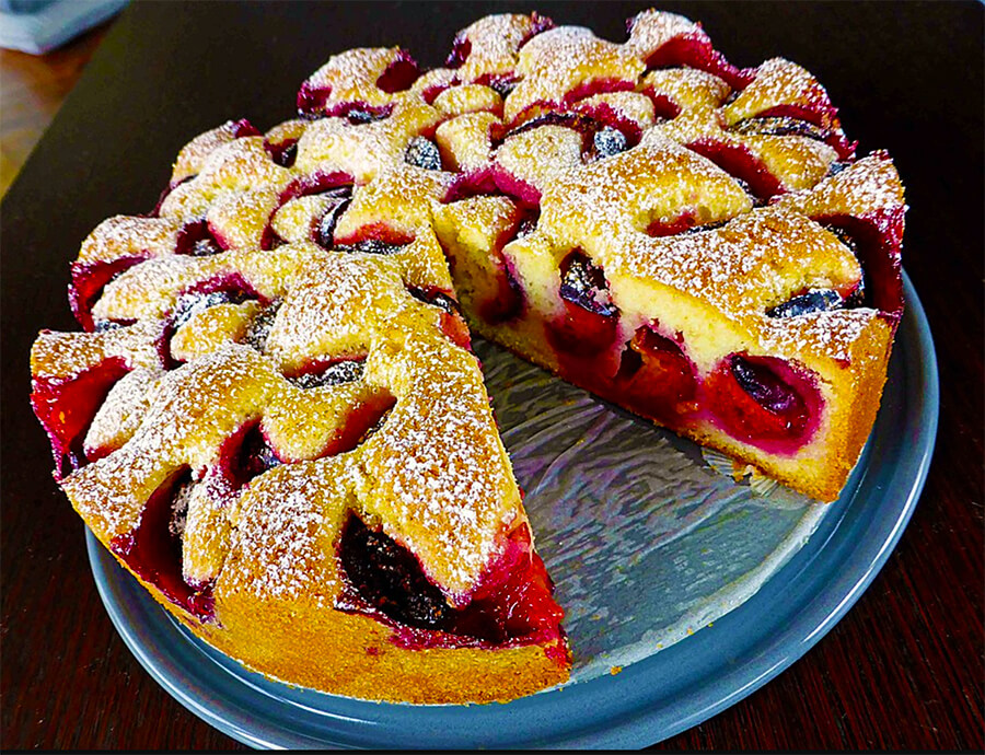 Der Teig eignet sich auch gut für andere Obstsorten wie zum Beispiel Apfel oder Birne.