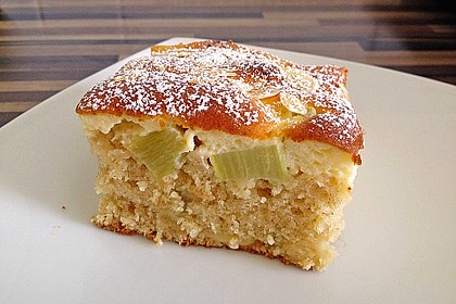 Für den Guss die Eier trennen. Das Eiweiß mit Salz steif schlagen. Eigelbe, Schmand, Zucker und Puddingpulver verrühren, dann das Eiweiß vorsichtig unterheben. Die Masse auf dem Rhabarber verteilen. Im vorgeheizten Backofen bei 180°C 30-40 Minuten goldgelb backen.