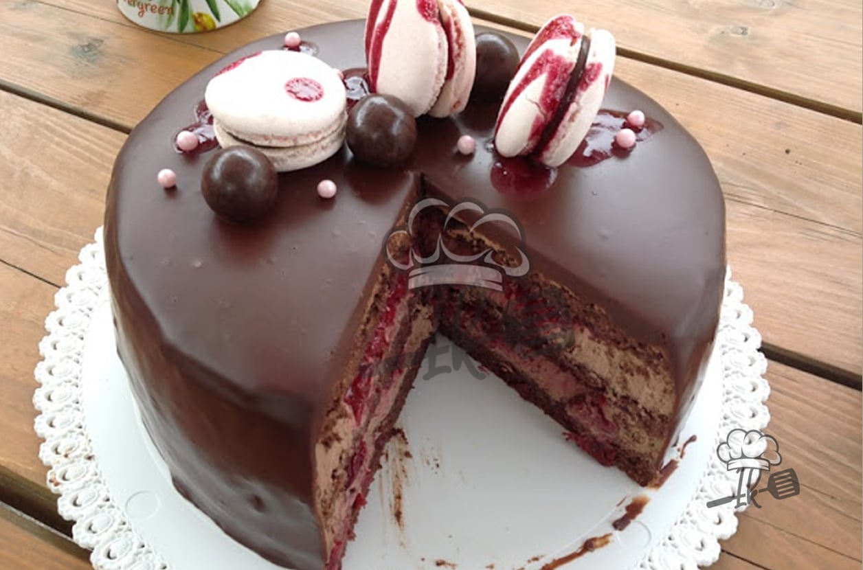 Es ist eigentlich eine Variante der klassischen Pariser Schokoladentorte, aber zusätzlich mit Sauerkirschen. Deren leicht saurer Geschmack entlastet den „dicken“, vollen Schokoladengeschmack.