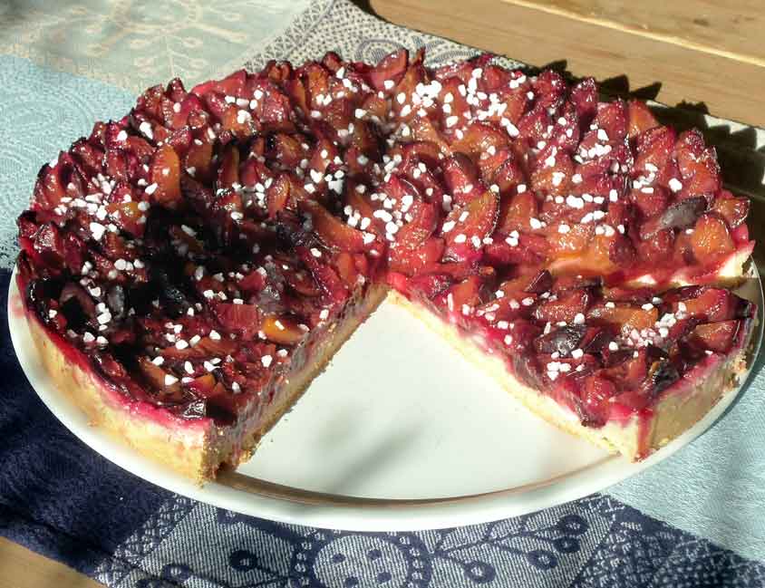 Wenn Sie Hagelzucker statt Streusel verwenden, dann den Hagelzucker erst kurz vor dem Servieren auf den Zwetschgenkuchen streuen.